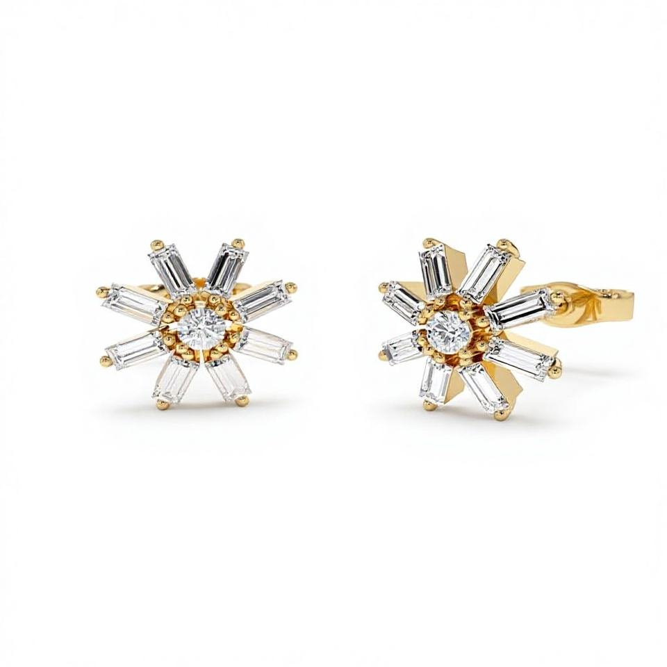 ต่างหูเพชรทรงบาแกตต์และทรงกลมแบบมินิมอล ดีไซน์โดดเด่น คุณภาพสูง ทำจากทองคำแท้ 14K ประดับเพชรแล็บ สำหรับเธอ