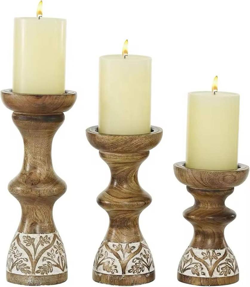 เชิงเทียนไม้สีขาวเทาโบราณดีไซน์เป็นเอกลักษณ์