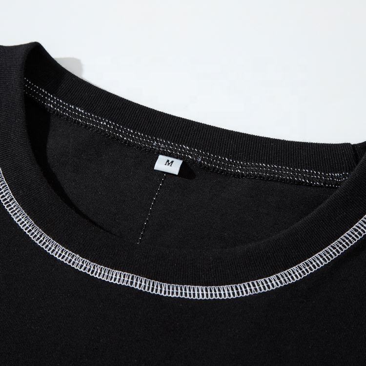 เสื้อยืดสีดำสำหรับทุกเพศเสื้อยืดปักโลโก้เสื้อยืดเย็บแบบตัด