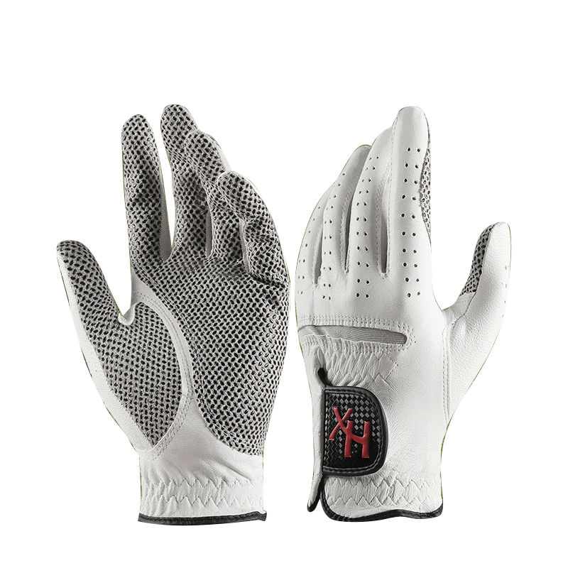 ถุงมือกอล์ฟพิมพ์ลาย unisex คุณภาพสูงทำจากหนัง Cabretta วัสดุกันลื่น MOQ ต่ำสำหรับใช้ในการเล่นกีฬา