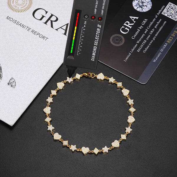 สร้อยข้อมือเพชรโมอิสรูปหัวใจสำหรับชายและหญิง925เงินแท้เครื่องประดับของขวัญคริสต์มาส