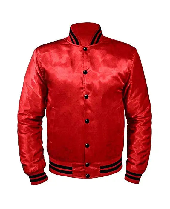 แจ็คเก็ตวาร์ซิตี้ผ้าซาตินไหมคุณภาพสูง แฟชั่นล่าสุด กันน้ำ ไซส์ใหญ่ สำหรับทุกเพศ ขายส่งราคาถูก สีดำล้วน