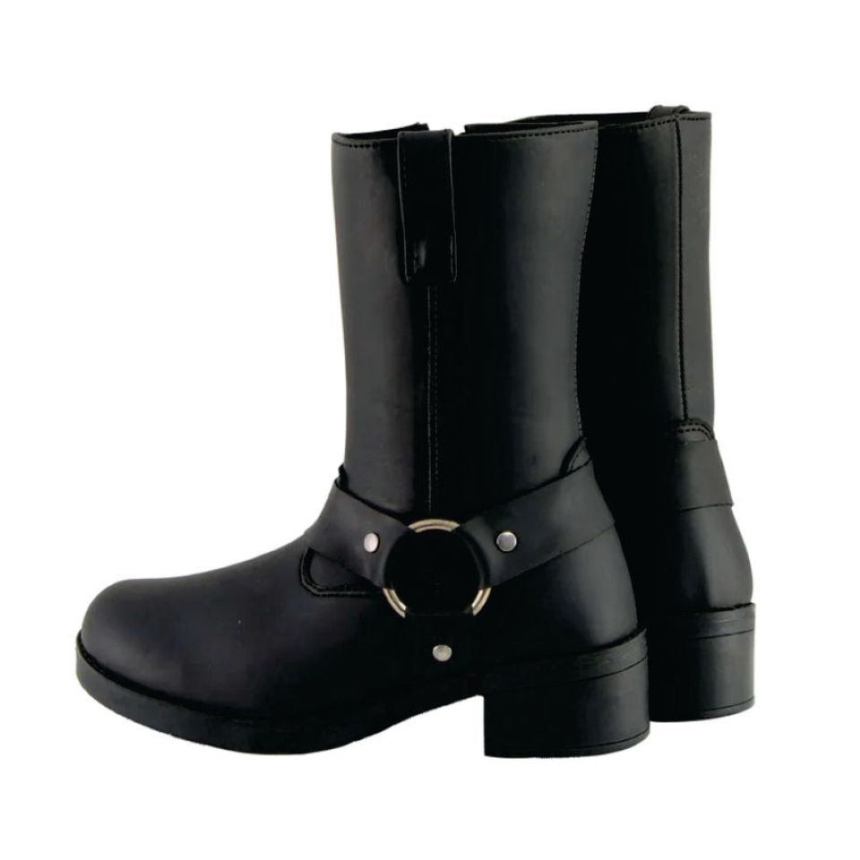 รองเท้าบูทหนังคุณภาพสูงสำหรับขี่มอเตอร์ไซค์ แบบยูนิเซ็กซ์ กันน้ำ กันลม สไตล์นักขี่มอเตอร์ไซค์ตะวันตก/คาวบอย ปลายเท้าหุ้มข้อสูง สำหรับกิจกรรมกลางแจ้ง