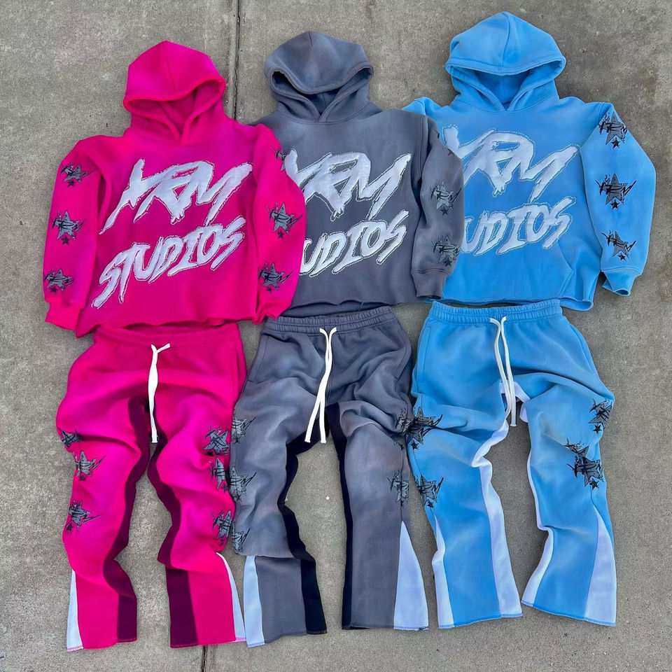 ชุดกีฬาโพลีเอสเตอร์ยูนิเซ็กส์คุณภาพสูงใส่ได้ทั้งชายและหญิงมีฮู้ดพิมพ์ลายแบบกรดซักได้ไซส์ใหญ่พิเศษสำหรับฤดูหนาว