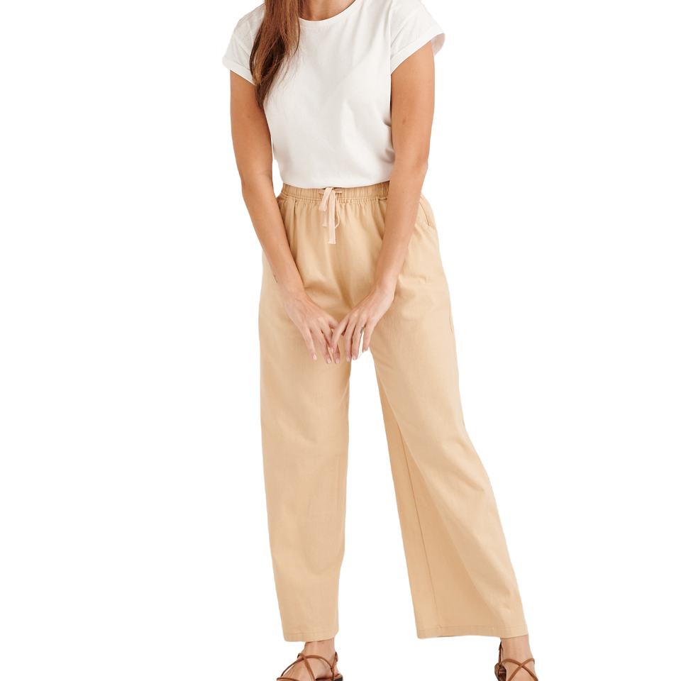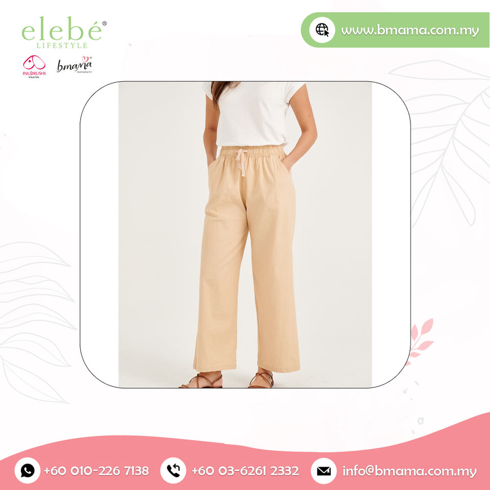 กางเกงผ้าลินินผ้าฝ้ายสีเบจสีนม