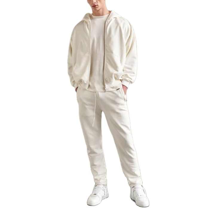 ชุดวอร์มสำหรับผู้ชายและผู้หญิงชุดวอร์มผ้าฝ้ายขนแกะมีซิปมีฮู้ดและกางเกงสำหรับผู้ชาย