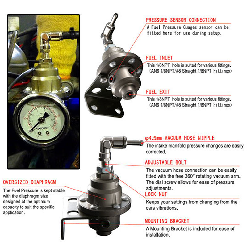 ตัวปรับแรงดันน้ำมันเชื้อเพลิงแบบปรับได้คุณภาพสูง รุ่นโทเมอิ พร้อมเกจวัดแรงดันแบบดั้งเดิมและคู่มือการใช้งาน