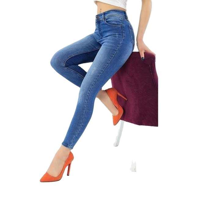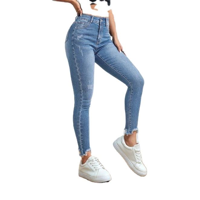 กางเกงผ้ายีนส์สีน้ำเงินแบบลำลองสำหรับผู้หญิงผ้าสแปนเด็กซ์มีซิปดีไซน์ปรับปรุงสำหรับผู้หญิงจากผู้จำหน่าย BD