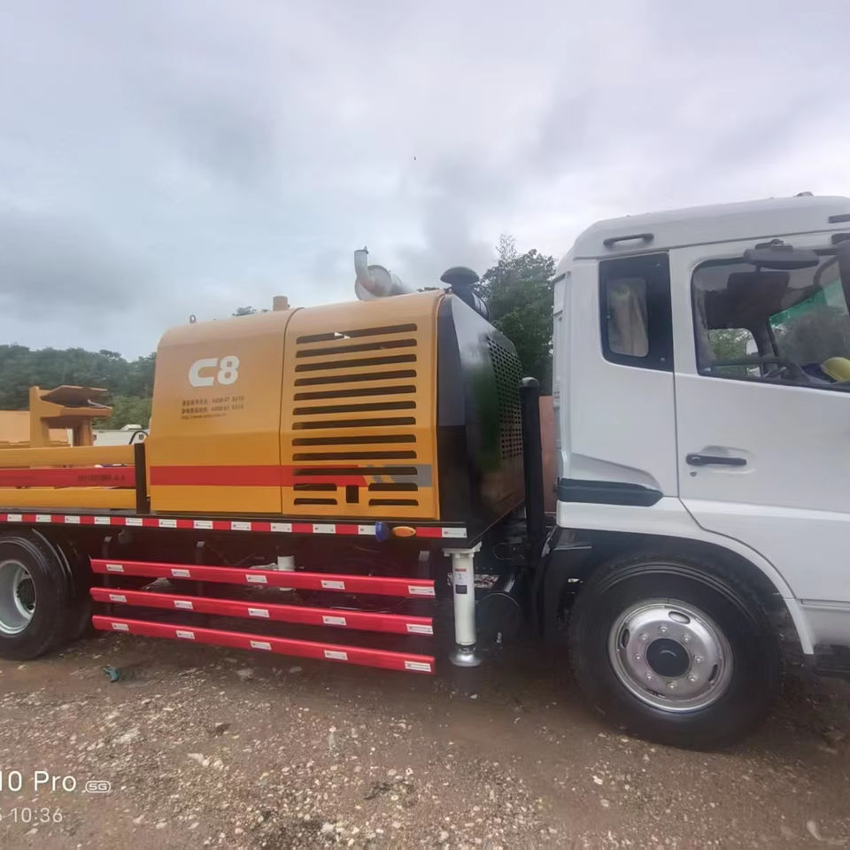 รถปั๊มคอนกรีต SANY SY155C ปี 2019 คุณภาพสูง มือสอง โครงรถ Dongfeng เครื่องยนต์ดีเซล ระยะส่งคอนกรีต 180 เมตร สีขาว/เหลือง