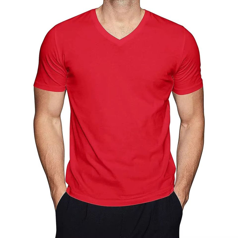 เสื้อยืดคอวีผู้ชายสั่งทำพิเศษ