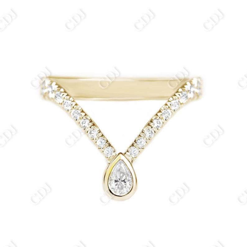 แหวนแต่งงานโมอิสสีทอง14K คุณภาพสูงรูปตัววีแหวนออกแบบได้ตามที่ต้องการได้รับการรับรองสำหรับผู้หญิงขายส่งเครื่องประดับใน CDJ
