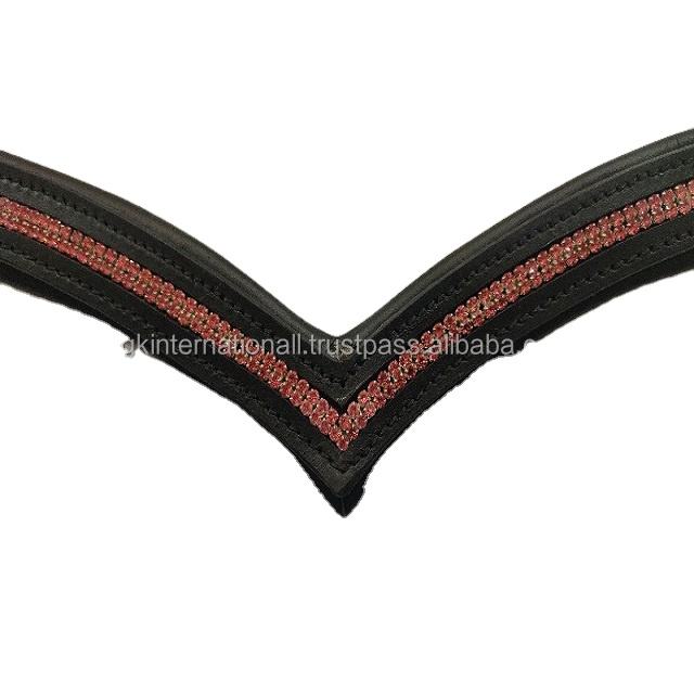 ที่มีคุณภาพสูง V รูปคิ้วหนังสายรัดสำหรับม้าที่มีความทนทานเย็บเต็มรูปแบบที่แข็งแกร่งและห่วงโซ่คริสตัลสีม่วง Bling