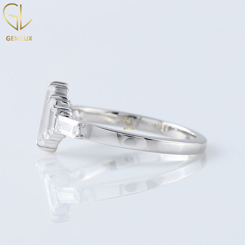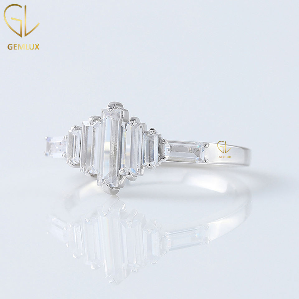 คุณภาพสูง VVS Baguette ตัดแหวนเพชรโมอิสซาไนต์แท้สำหรับผู้หญิงแหวนหินเจ็ดชิ้นแบบเหลี่ยมแนวตั้งสำหรับผู้หญิง