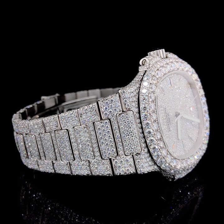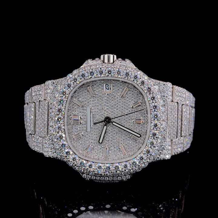 นาฬิกาข้อมือเพชรโมอิสซาไนต์คุณภาพสูง VVS สำหรับผู้ชาย ขายดี สายสแตนเลส เครื่องควอตซ์ สไตล์ฮิปฮอป