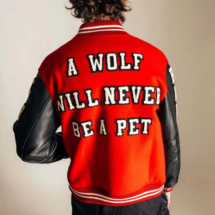 แจ็คเก็ตวาร์ซิตี้คุณภาพสูงสำหรับผู้ชาย ปักลายเชนิลล์ แขนหนัง แจ็คเก็ตเบสบอลแบบกำหนดเอง แจ็คเก็ตวาร์ซิตี้สำหรับผู้ชาย