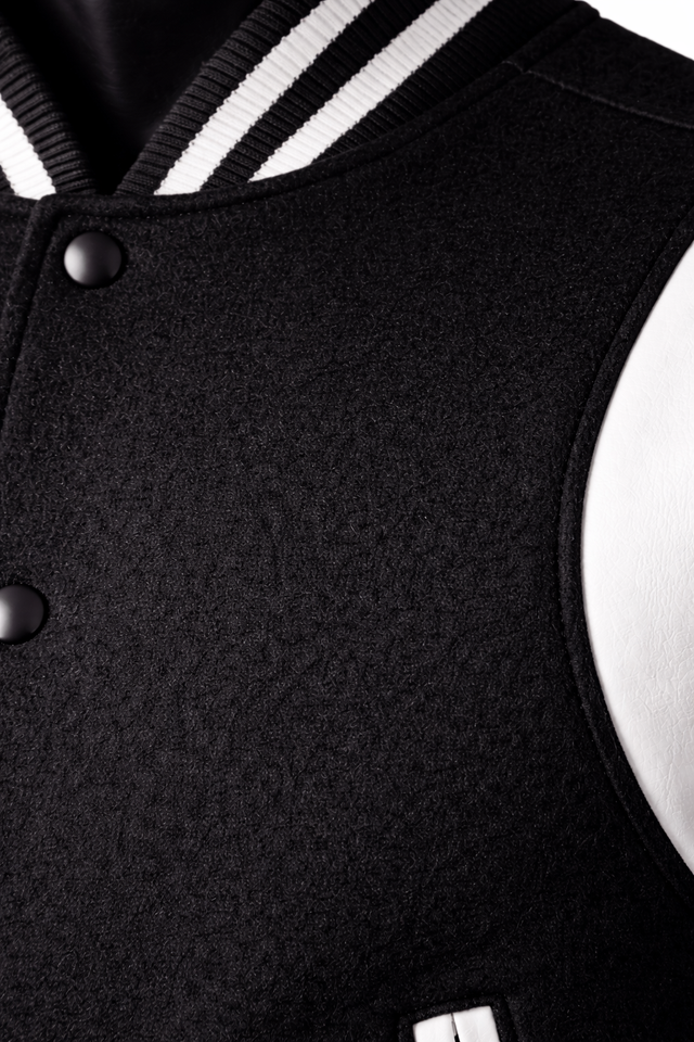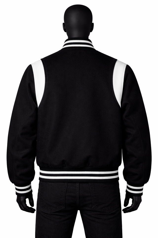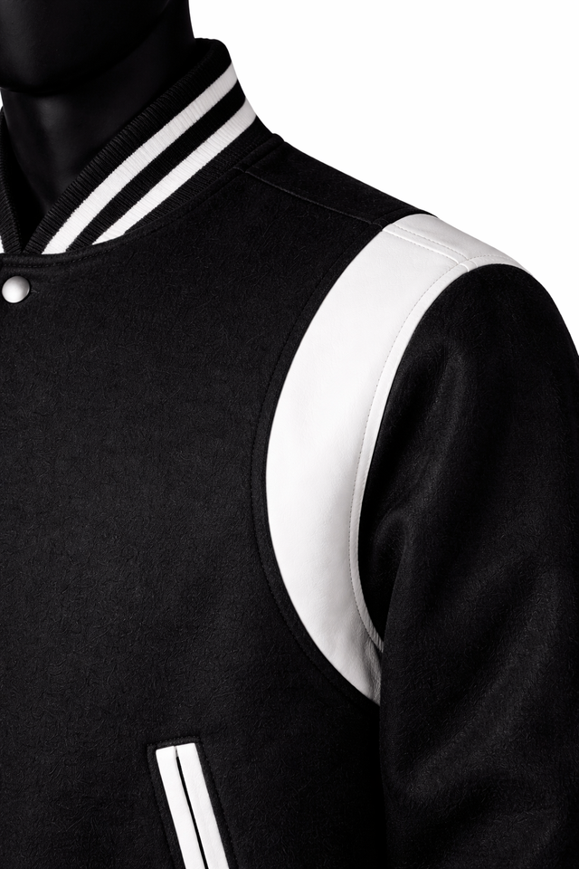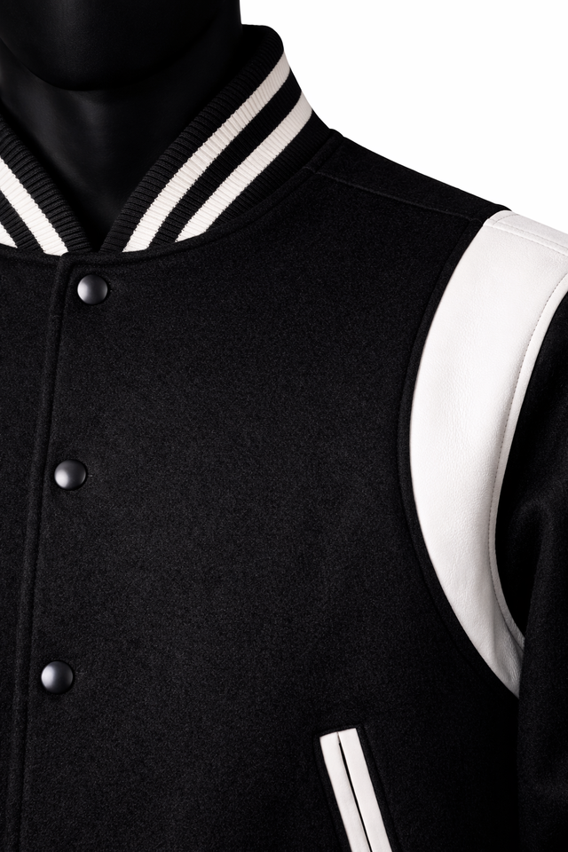 แจ็คเก็ตวาร์ซิตี้คุณภาพสูง ตัวเสื้อทำจากผ้าขนสัตว์ แขนเสื้อทำจากหนังแท้ ดีไซน์คอตั้ง กันน้ำ เหมาะสำหรับใส่ในฤดูหนาว แจ็คเก็ตวาร์ซิตี้ทันสมัยและมีสไตล์