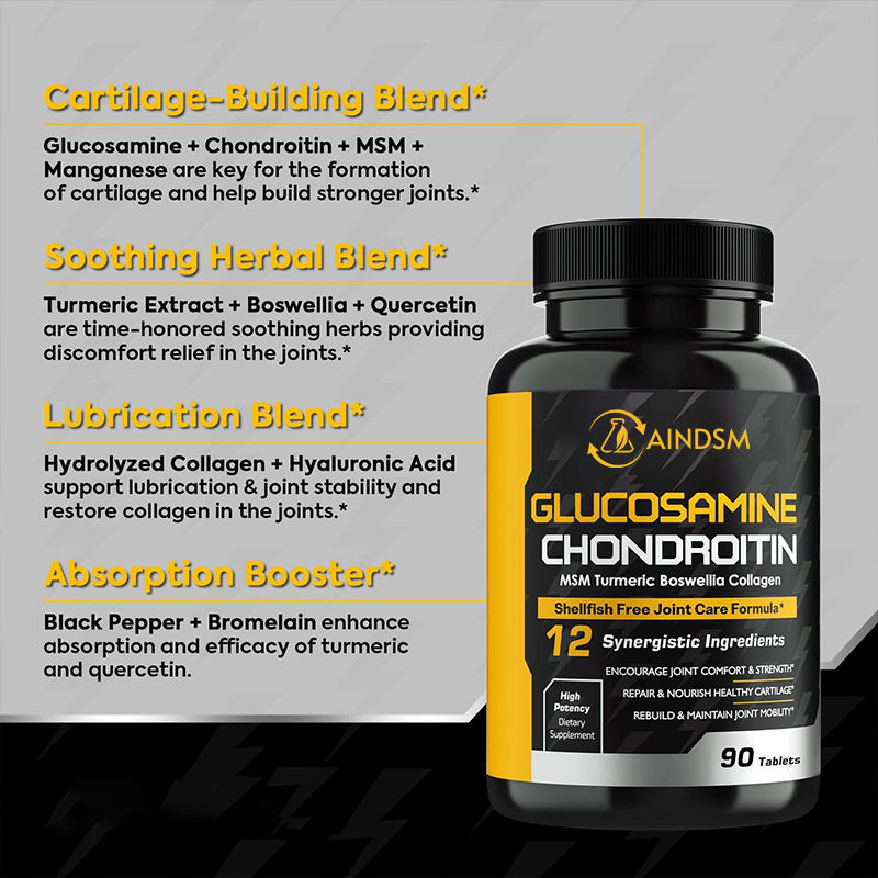 ยาเม็ดเคอร์ซิตินกลูโคซามีนคอนดรอยตินสำหรับวีแกนสนับสนุนความแข็งแรงของกระดูกและช่วยเพิ่มประเภทวิตามินเพื่อสุขภาพ