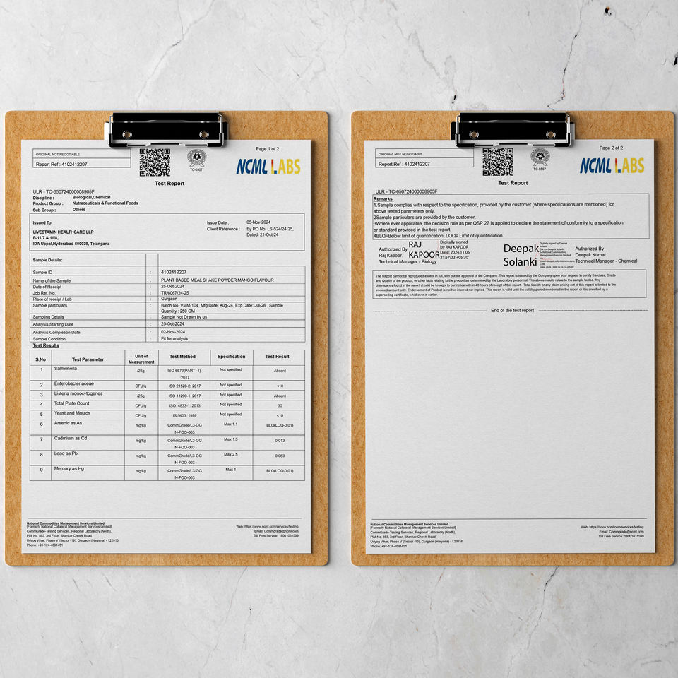 ข้อกำหนดผลิตภัณฑ์:Vegan Protein Meal Replacement Shake