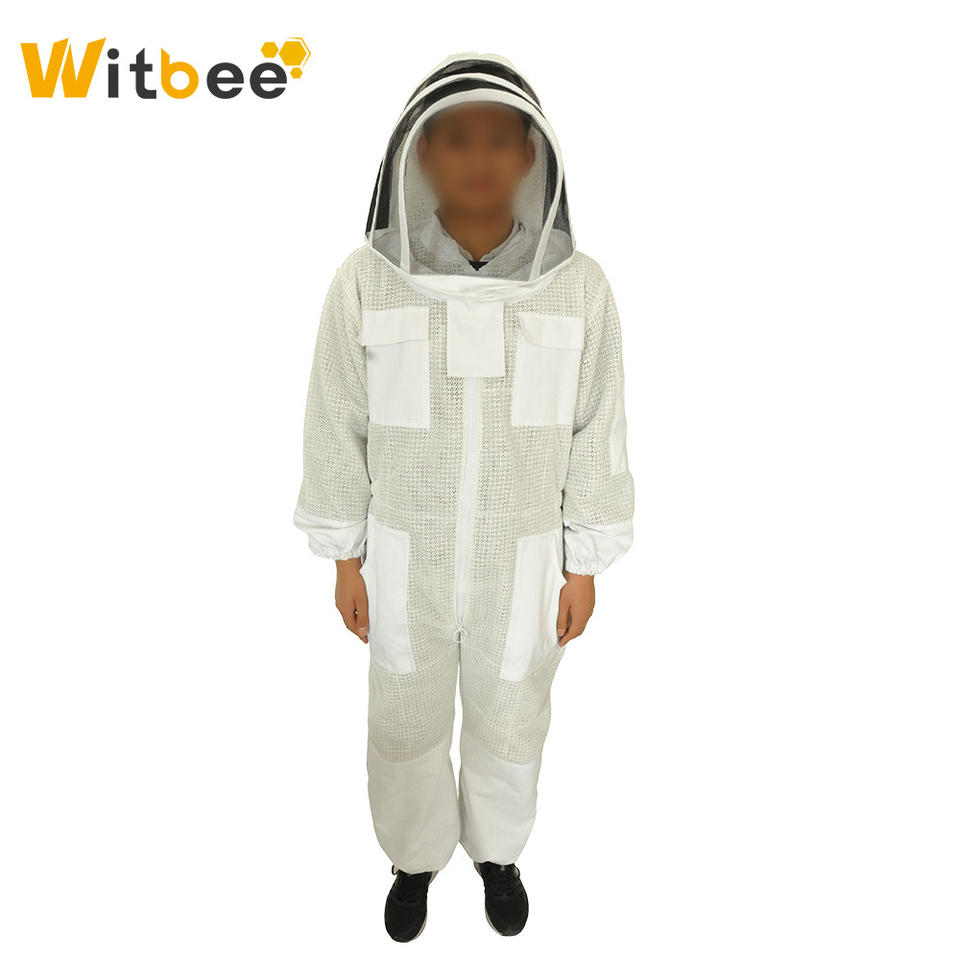 เสื้อแจ็กเก็ตเก็บผึ้งระบายอากาศได้ดีชุดสูทสามชั้นผ้าฝ้ายสำหรับเลี้ยงผึ้ง