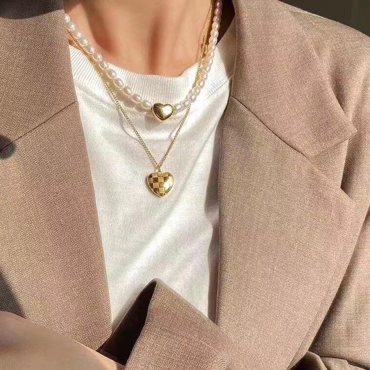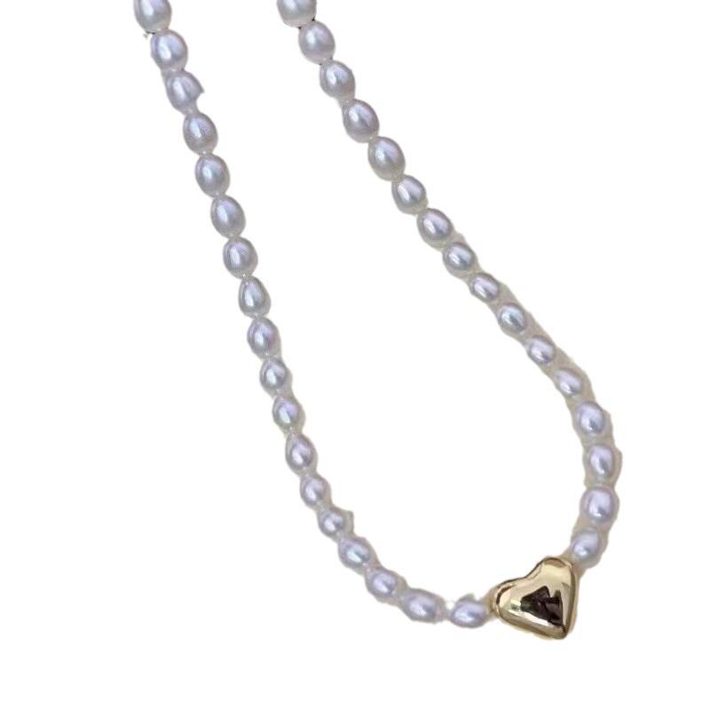 สร้อยคอจี้แฟชั่นเรียบง่าย คุณภาพสูง ประดับมุกน้ำจืดรูปหัวใจ พร้อมลูกปัดข้าว แสงสว่างสวยงาม เหมาะกับทุกชุด