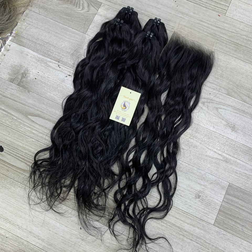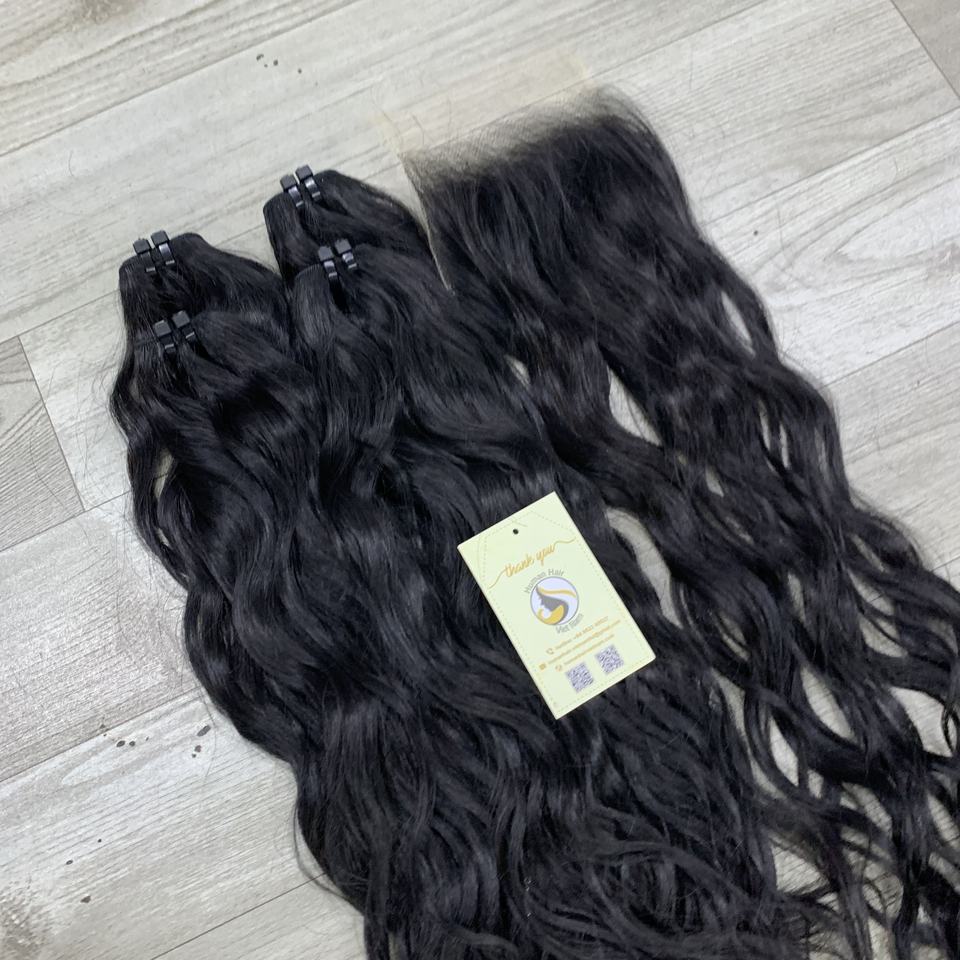 ผมแท้เวียดนามคุณภาพสูง สีดำธรรมชาติ แบบผีเสื้อ ลอนคลื่น แบบดับเบิ้ลดรอน ต่อผมแบบ Genius Weft