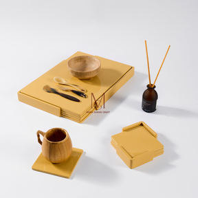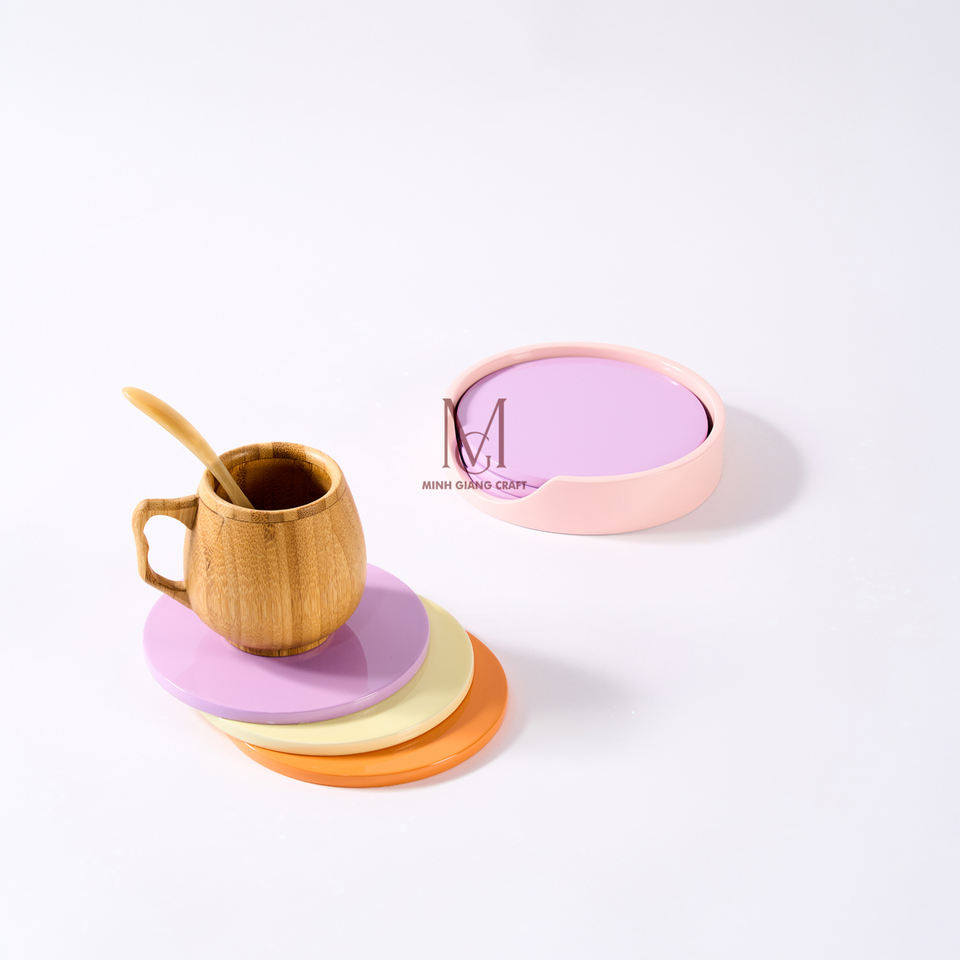 ชุดถาดรองเครื่องดื่มแล็กเกอร์เคลือบเวียดนามพร้อมกล่องเก็บของถาดรองแก้วสีทองทำด้วยมือทำจากไม้ทนทานสำหรับโต๊ะอาหาร