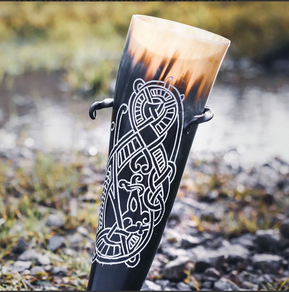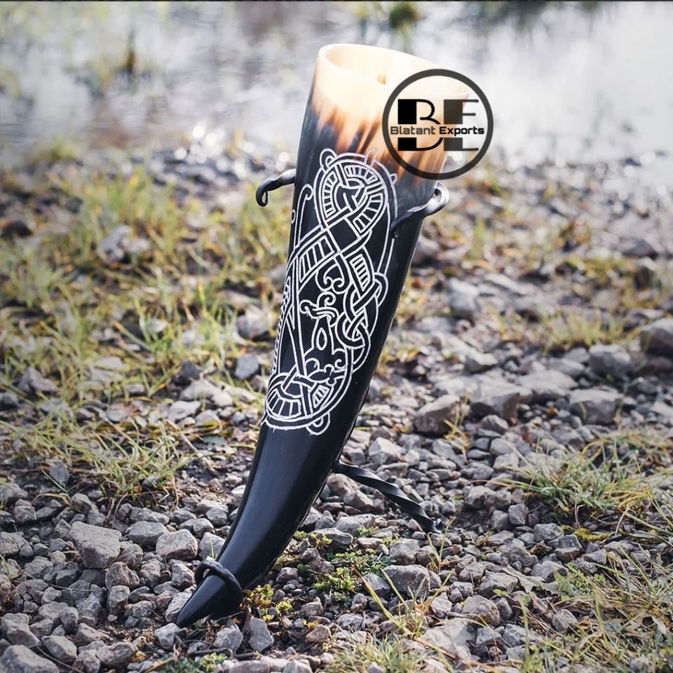 ฮอร์นดื่มไวกิ้งสลักโลโก้ตามสั่งสไตล์สัตว์ธรรมชาติ