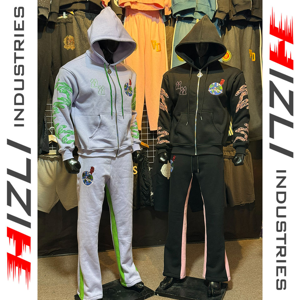ชุดวิ่งปักลายด้วยผ้าคอตตอนมีฮู้ดแนววินเทจสำหรับ100% ชุดวิ่งกางเกงวอร์มสตรีทพิมพ์ลายเสื้อกันหนาวสำหรับฤดูหนาว