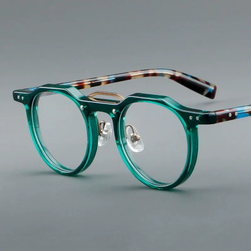 แว่นตาอะซิเตทสไตล์วินเทจแว่นตากลมตามใบสั่งแพทย์แบบย้อนยุคสำหรับผู้ชายและผู้หญิง
