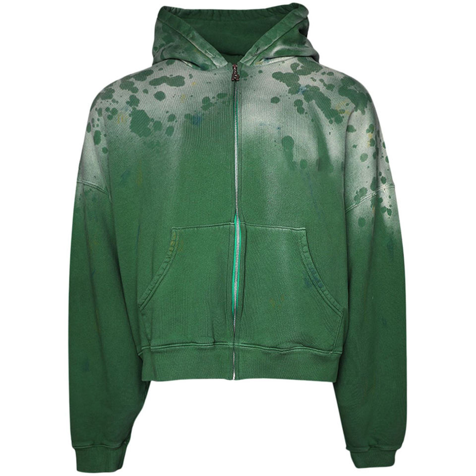 เสื้อฮู้ดซิปสไตล์วินเทจคุณภาพสูงสำหรับผู้ชาย ลุคย้อนยุคแบบฟอกสี ผ้าถักเนื้อหนา ทรงโอเวอร์ไซส์ เหมาะสำหรับฤดูใบไม้ร่วง