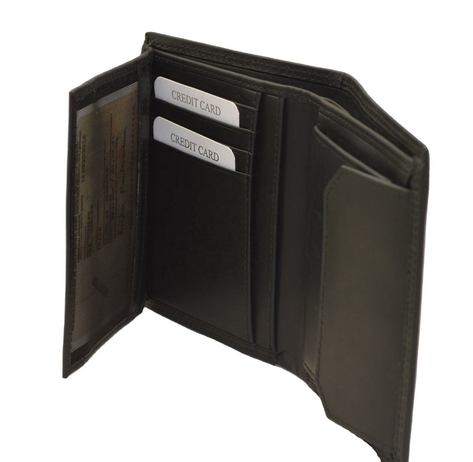 กระเป๋าสตางค์ผู้ชายหนังม้าแนววินเทจแบบพับสามทบกระเป๋าสตางค์แบบเปิดช่องใส่บัตรทำจากโพลีเอสเตอร์