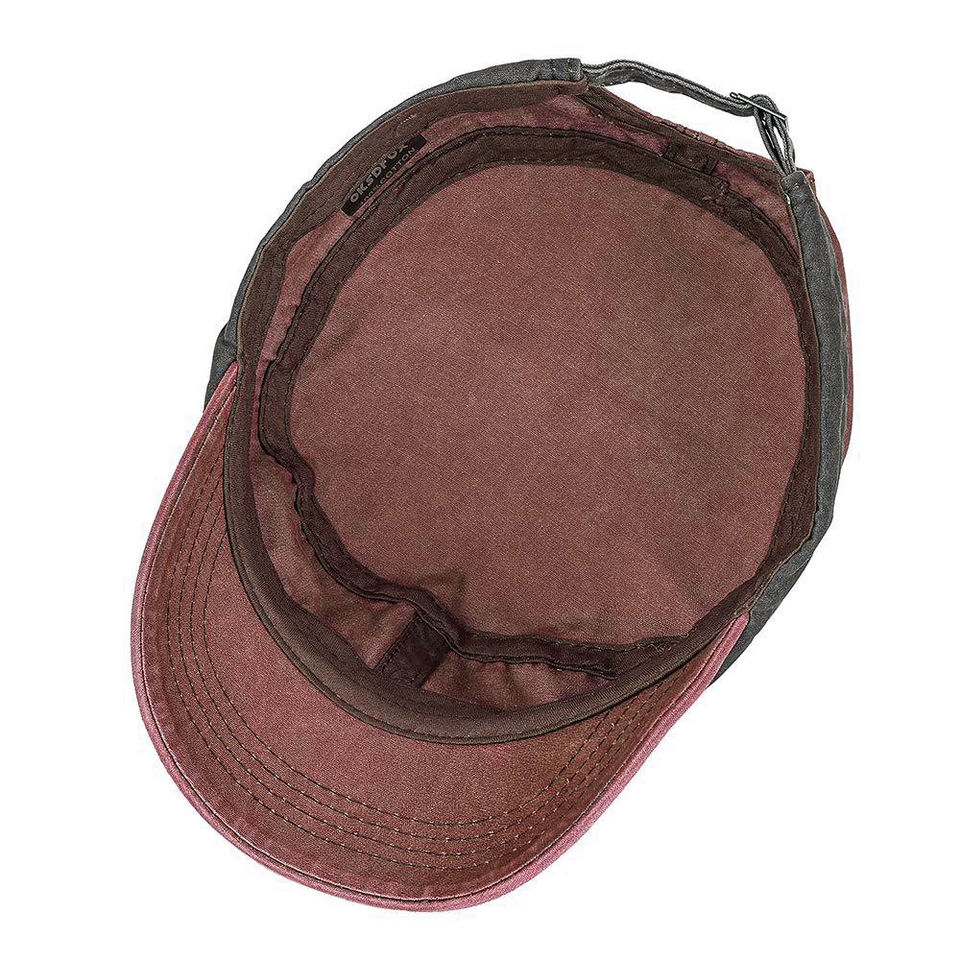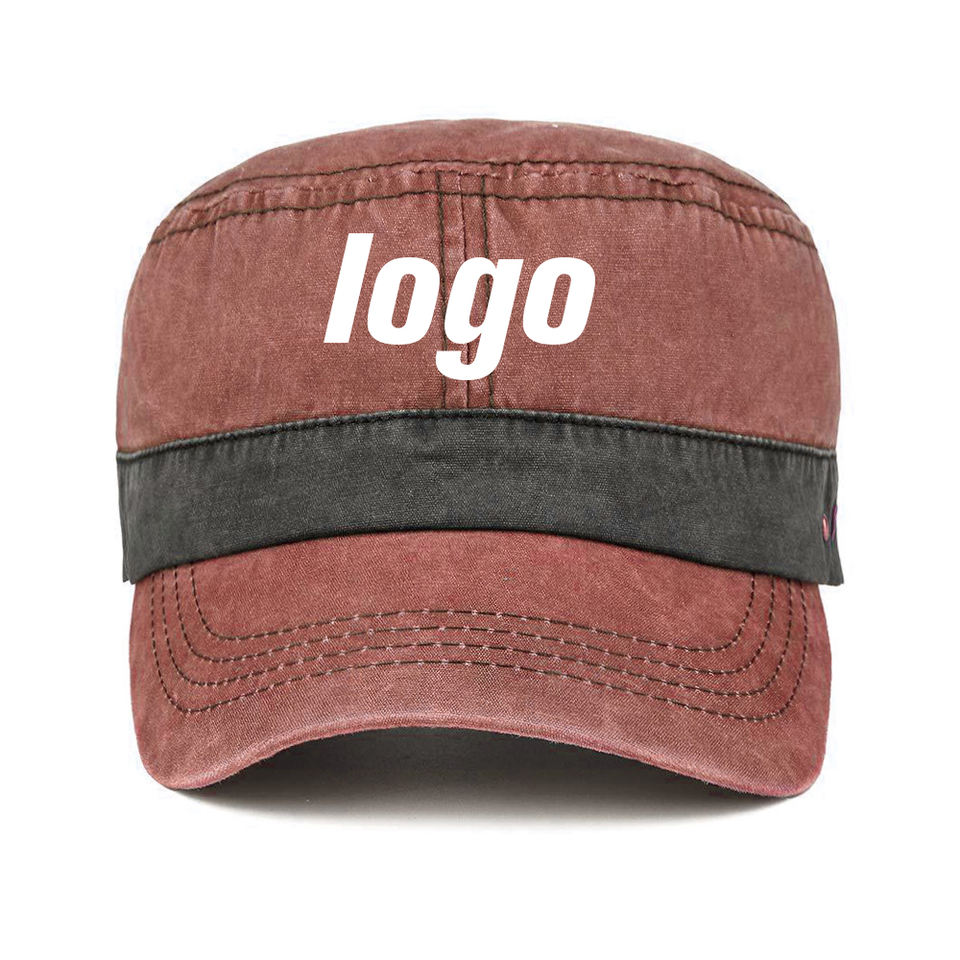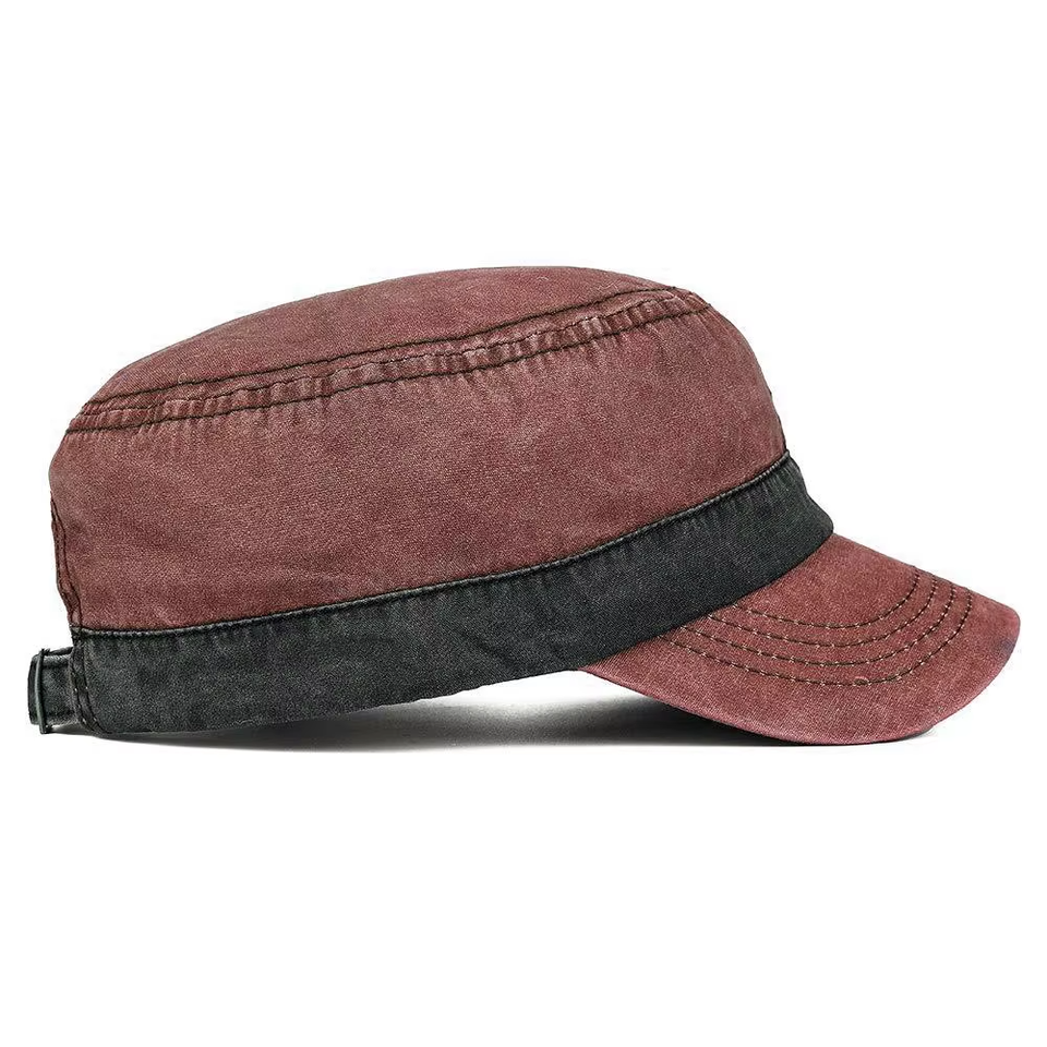 หมวกแก๊ปทรงแบนสีเขียวมะกอกสไตล์วินเทจคุณภาพสูง ผ้าฝ้ายฟอกแบบดิสเทรส สำหรับผู้ชาย
