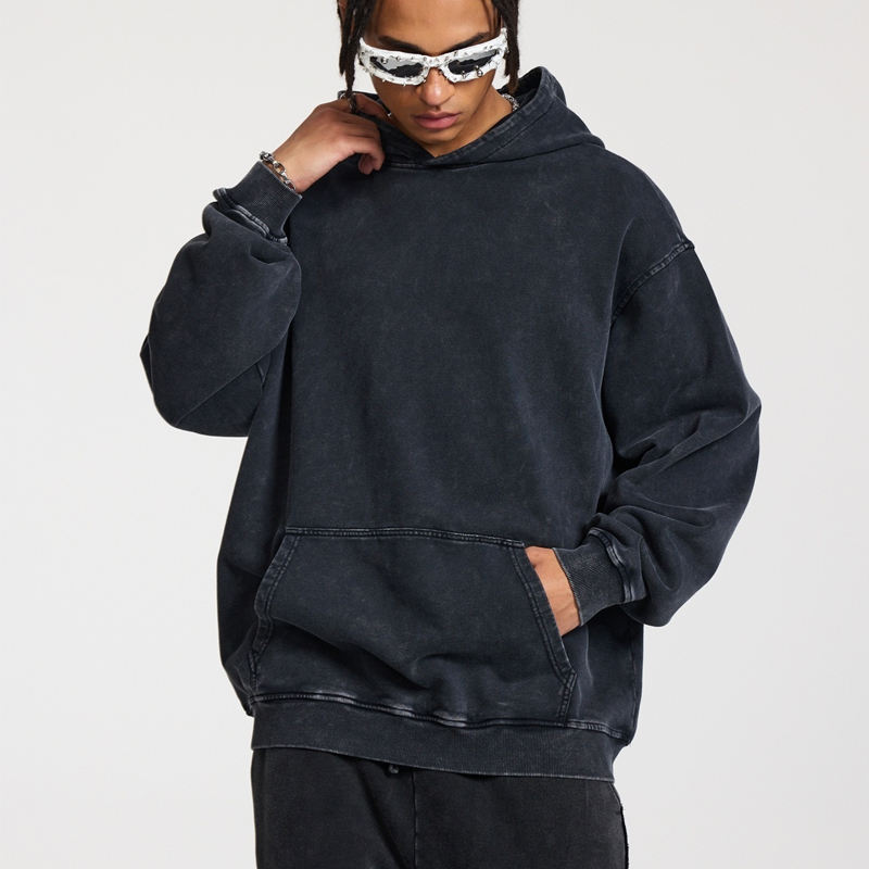 เสื้อฮู้ดผ้าฝ้ายรุ่นเฮฟวี่เวทวินเทจสำหรับผู้ชายซักกรดไซส์ใหญ่พิเศษ