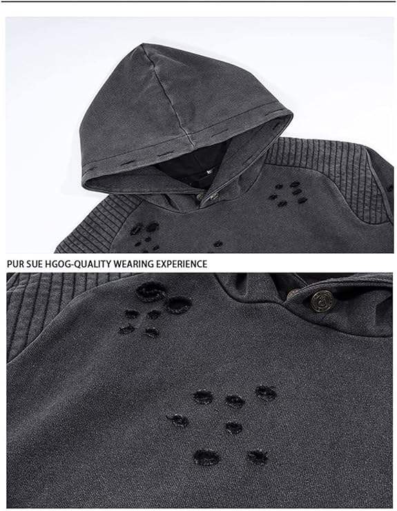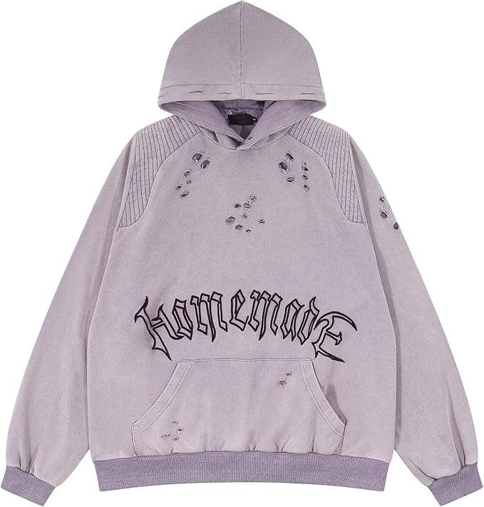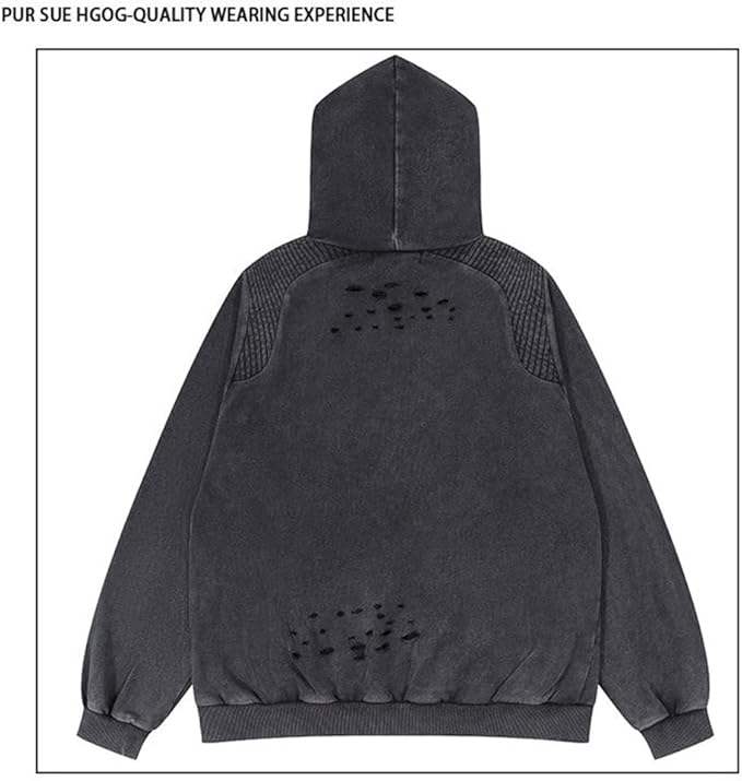 เสื้อฮู้ดดี้วินเทจคุณภาพสูง สไตล์สตรีทแวร์ ฮิปฮอป ปักลาย ขาดๆ เซอร์ๆ ลุคดิสเทรส ซักฟอก