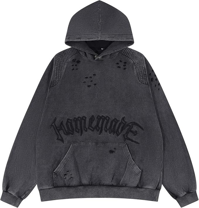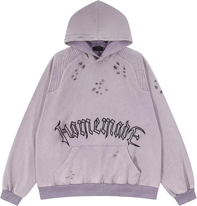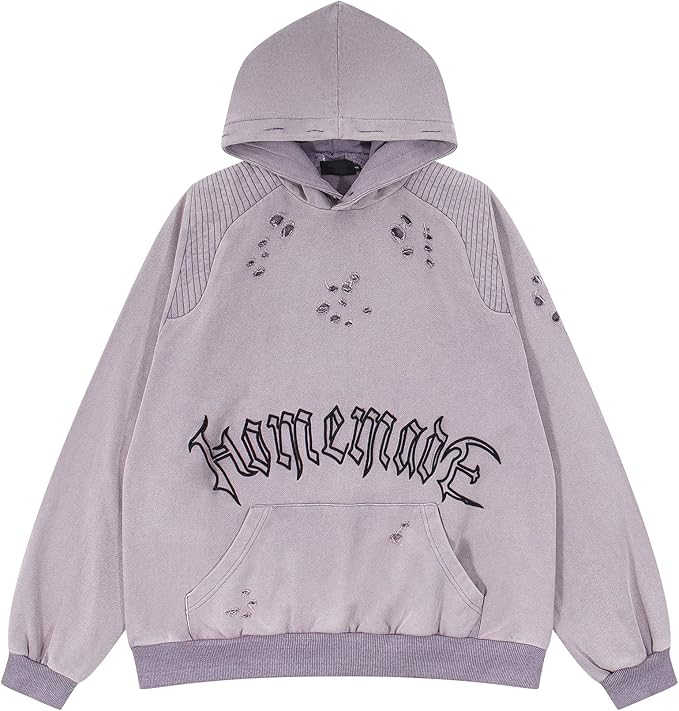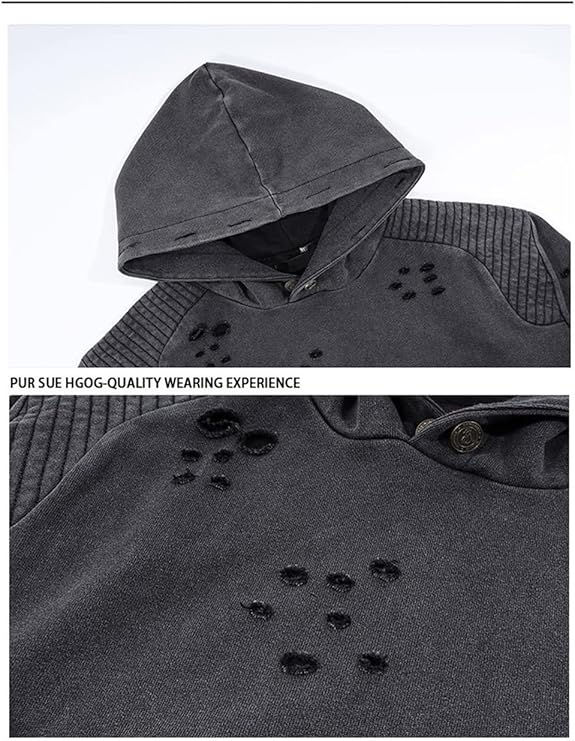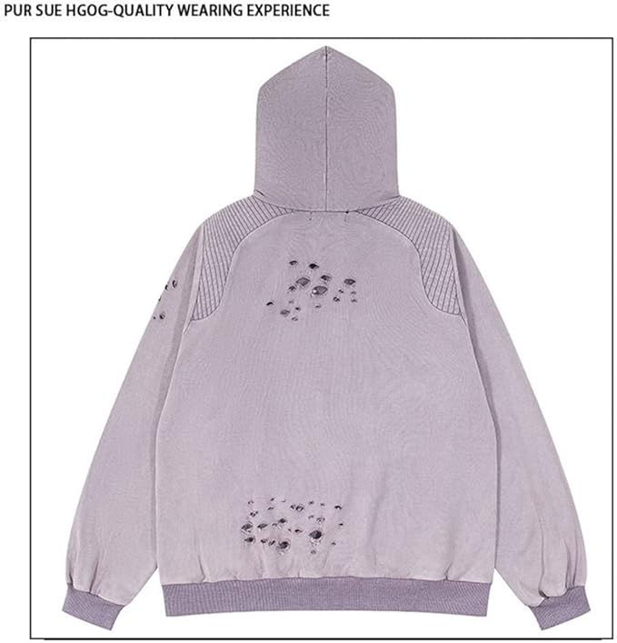 เสื้อสเวตเตอร์มีฮู้ดแนวสตรีทเสื้อฮิปฮอปมีรอยขาดผ้าซักมีฮู้ด