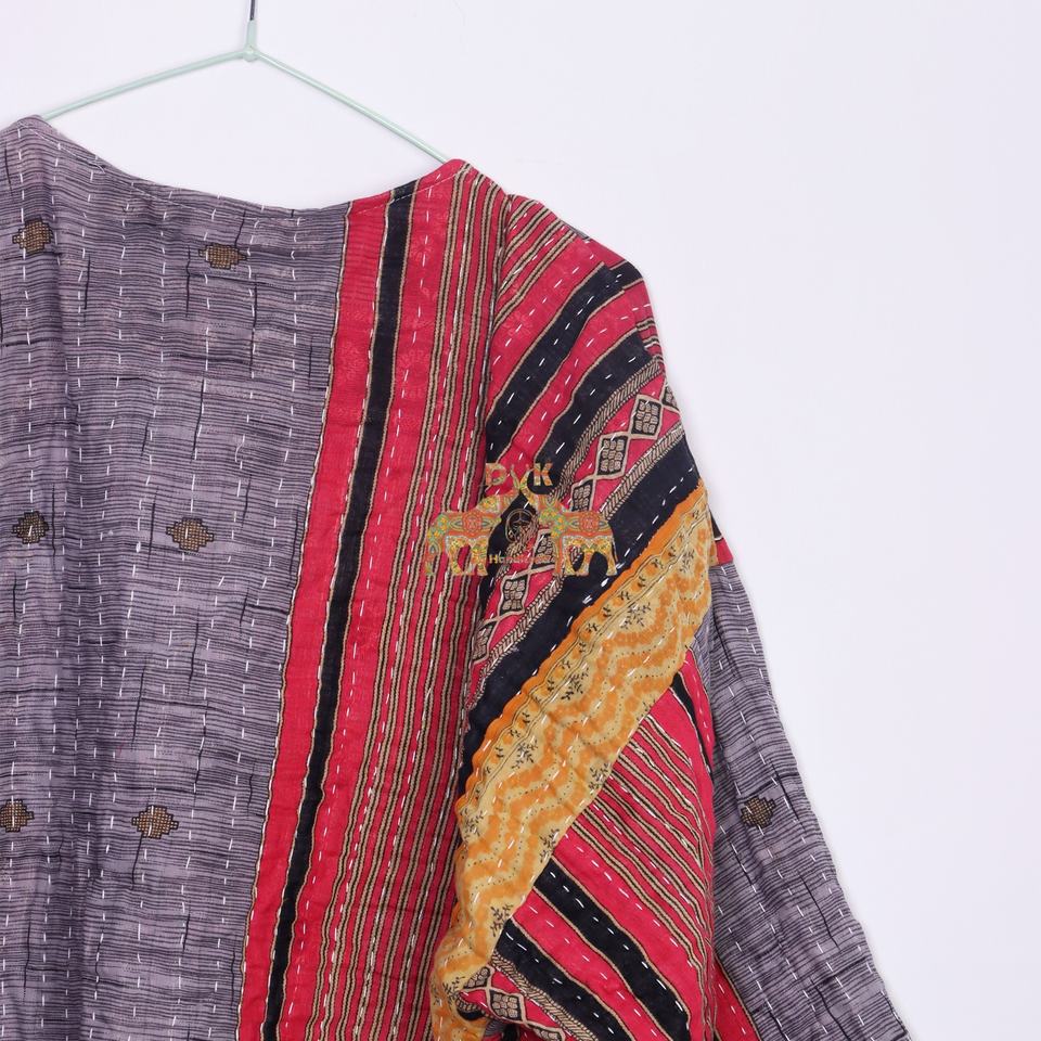 ชุดกิโมโน Kantha สไตล์วินเทจสำหรับผู้หญิงเสื้อคลุมลายทางวินเทจทำด้วยมือแบบดั้งเดิมเสื้อผ้าคอตตอนพิมพ์ลาย