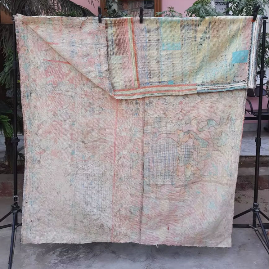 ผ้าคลุมเตียงกันธาแบบวินเทจดั้งเดิม ปักลายด้วยมือ