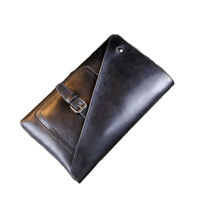 กระเป๋าทรงซองจดหมายหนังวินเทจคุณภาพสูงสำหรับผู้ชายกระเป๋าคลัทช์มีซิปกระเป๋าเงินแบบเรียบหรู