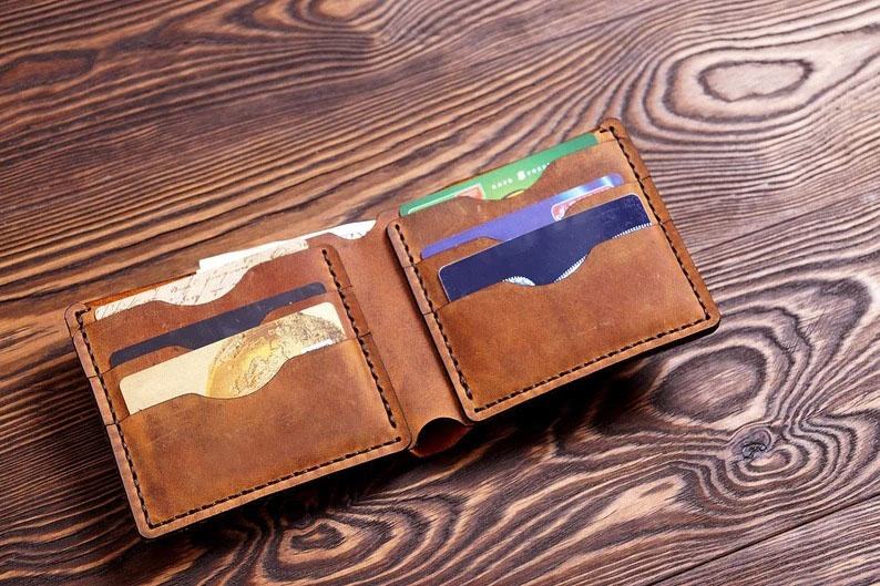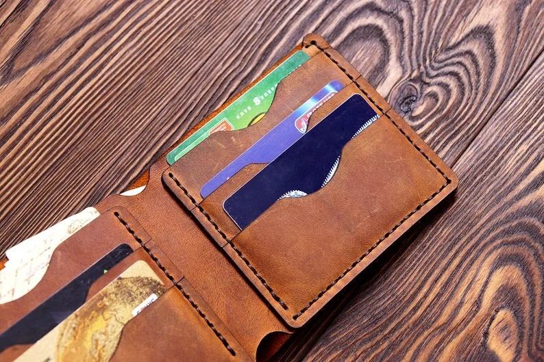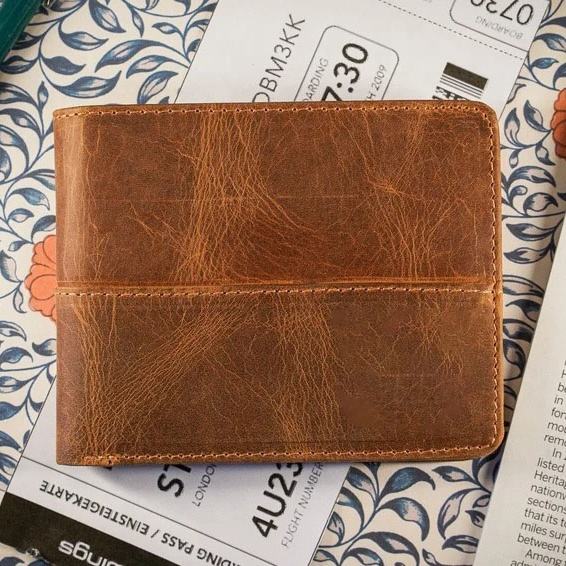 กระเป๋าสตางค์หนังวัวแท้แบบพับสองตอน ดีไซน์วินเทจคุณภาพสูง กันน้ำ ป้องกัน RFID สำหรับผู้ชาย สีและโลโก้ปรับแต่งได้ ผลิตในปากีสถาน