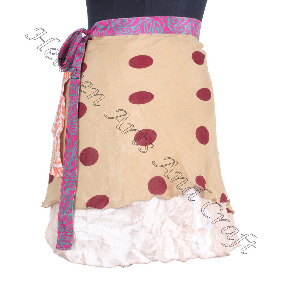 กระโปรงมินิแบบพันรอบเนื้อผ้าไหมโพลีเอสเตอร์ของผู้หญิง,กระโปรงสั้นแบบพันรอบเนื้อผ้าละเอียดแนววินเทจ