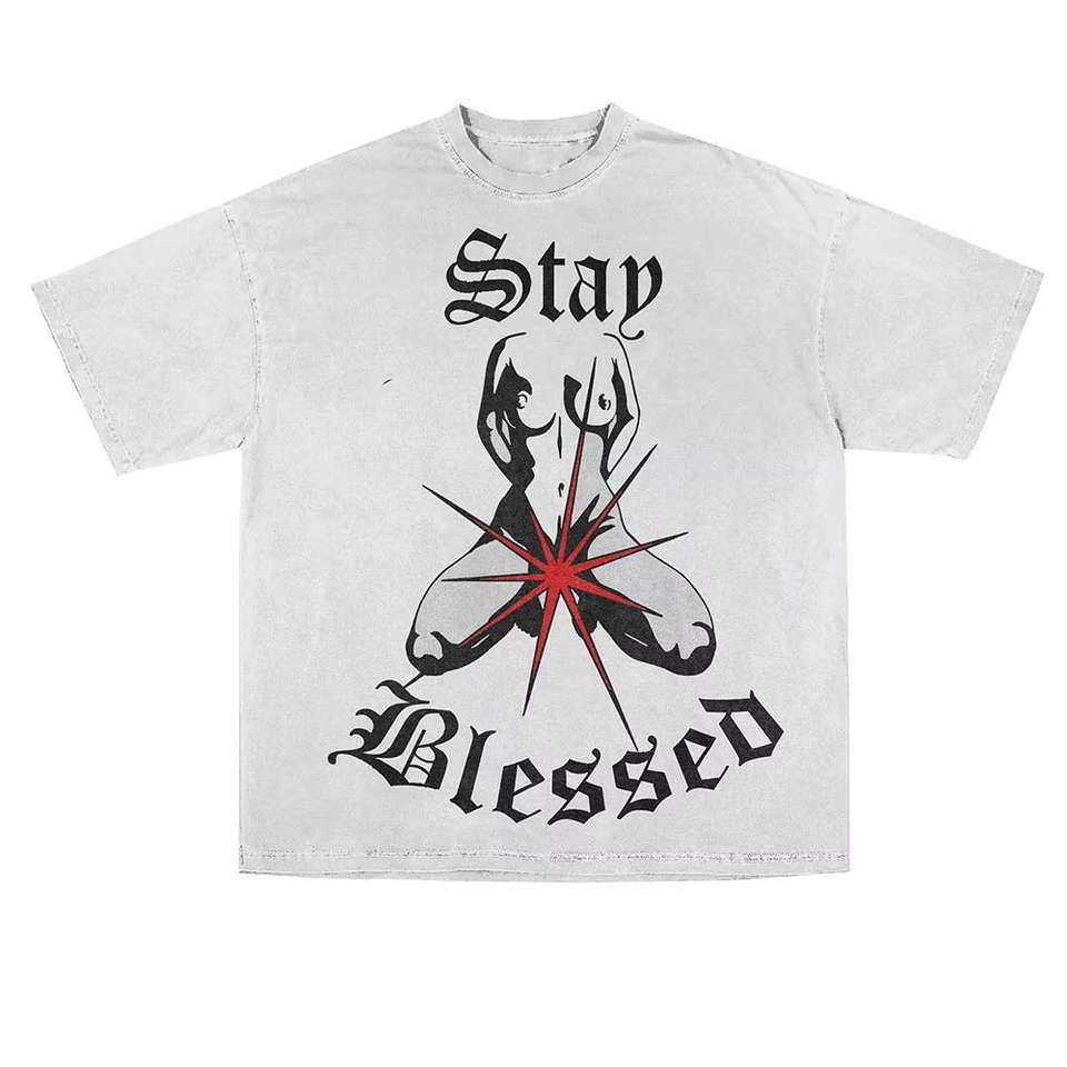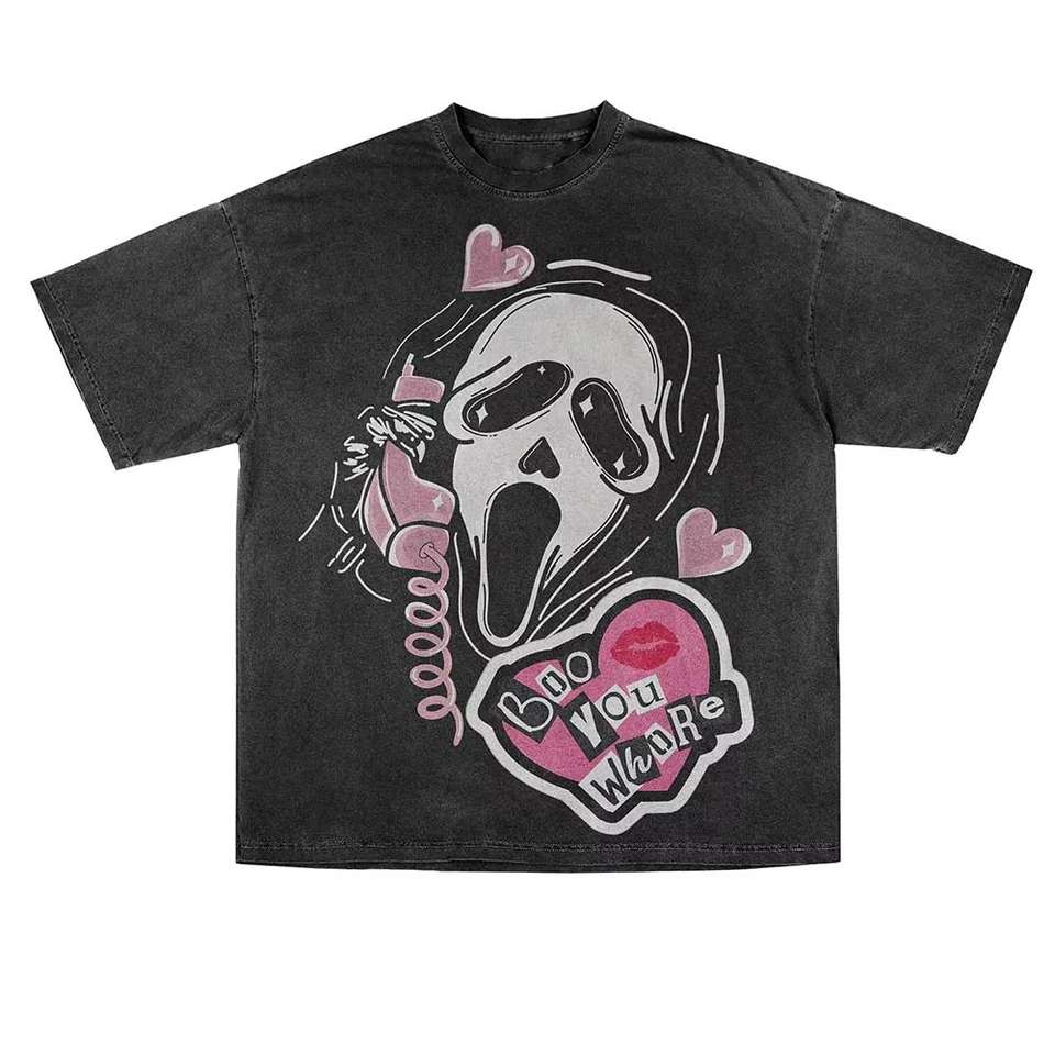 เสื้อยืดลำลองแขนสั้นของผู้ชายแนววินเทจย้อนยุคฮิปฮอปร็อคผ้าฝ้าย100% ซักออกแบบมีขอบพิมพ์ลายหลวม