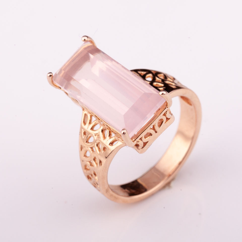 แหวนโรสควอทซ์แนววินเทจประดับโรสโกลด์โรเดียม925สีทองแบบแฟนซีขนาดใหญ่สำหรับงานปาร์ตี้