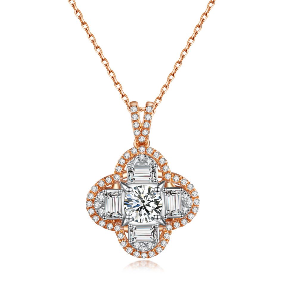 จี้เพชรสีทอง18K สไตล์วินเทจคุณภาพสูงจี้รูปดอกไม้ระยิบระยับทันสมัยได้รับการรับรองว่าเหมาะกับทุกเพศ