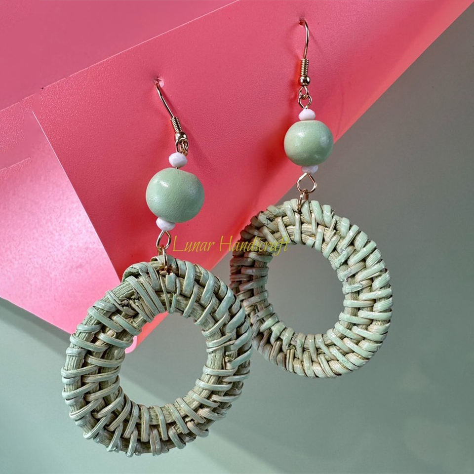 ต่างหูหวายสไตล์วินเทจคุณภาพสูงวัสดุหวายธรรมชาติสไตล์ใหม่จากเวียดนาม