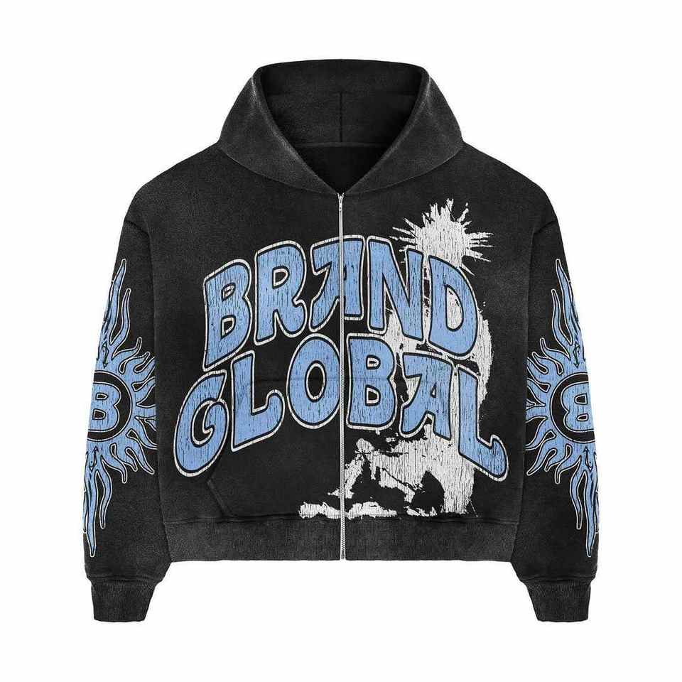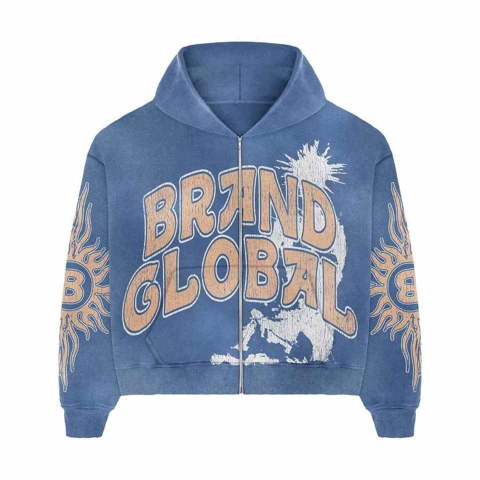 เสื้อมีฮู้ดลายผู้ชายวินเทจซักได้เสื้อมีฮู้ดผ้าคอตตอน100% ซีดแสงแดดออกแบบได้ตามต้องการสำหรับฤดูหนาว