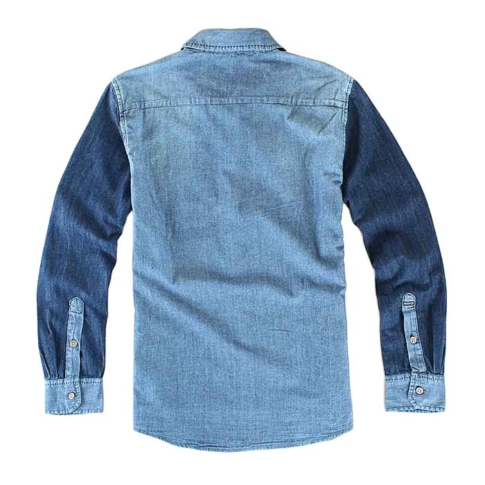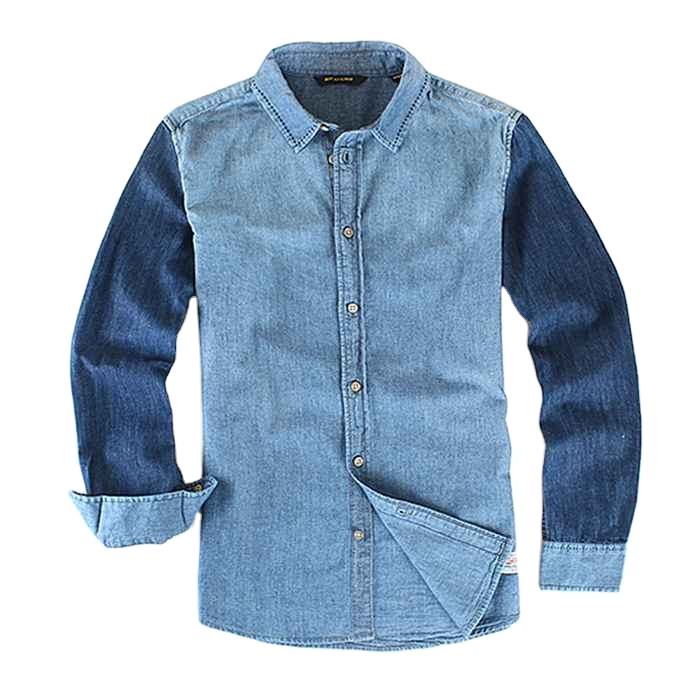 เสื้อเชิ้ตเดนิมคุณภาพสูง ซักแล้ว ระบายอากาศได้ดี สวมใส่สบาย ขายส่งสำหรับผู้ชาย เสื้อเชิ้ตเดนิมแขนยาวติดกระดุม