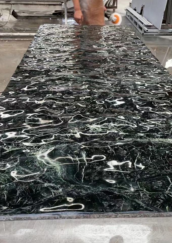 กระเบื้องหินอ่อนธรรมชาติคลื่นน้ำคุณภาพสูงหินหรูหราสำหรับโต๊ะเคาน์เตอร์และการออกแบบพื้นผนังตกแต่ง