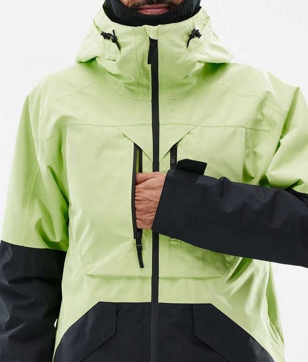 แจ็กเก็ตสกี10,000มม. กันน้ำได้สำหรับผู้ชายชุดสกีกันลมให้ความอบอุ่นนีออน/สีดำสำหรับฤดูหนาว