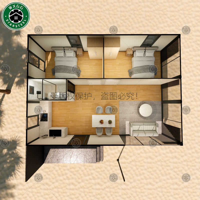 บ้านคอนเทนเนอร์กันน้ำคุณภาพสูง ขนาด 20 ฟุต 40 ฟุต โครงเหล็กแข็งแรง ประกอบง่าย บ้านแบบโมดูลาร์