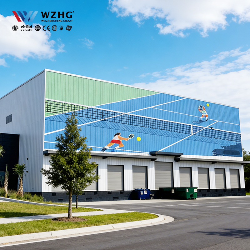 โครงสร้างเหล็กสนามเทนนิสในร่มคุณภาพสูง กันน้ำ ประกอบได้ในสถานที่ อายุการใช้งาน 50 ปี ทนลมแรง 200 กม./ชม. เหมาะสำหรับรีสอร์ท